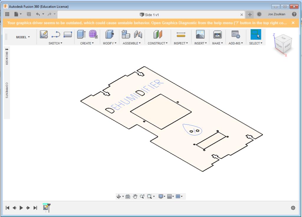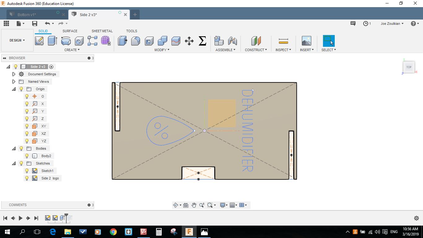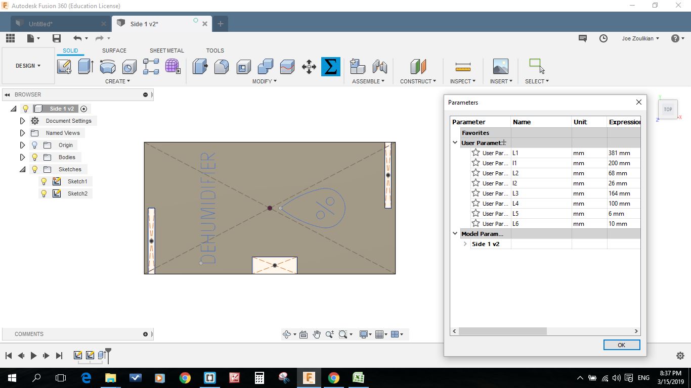 I designed the sides as well as the top and bottom walls for my "Dehumidifier" using the "Fusion 360" software.