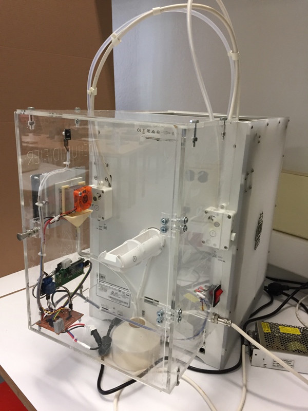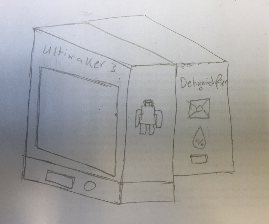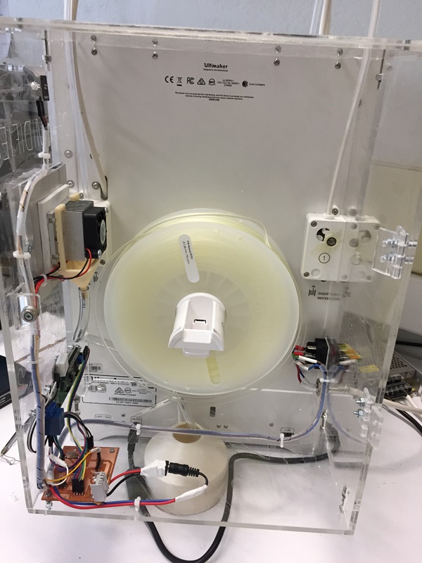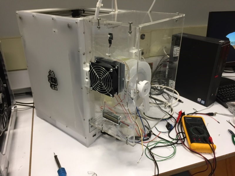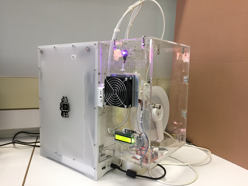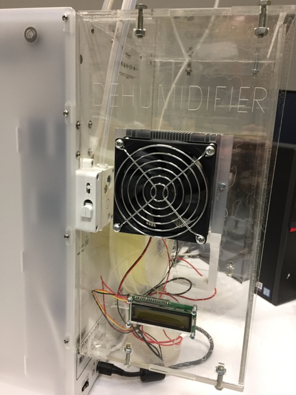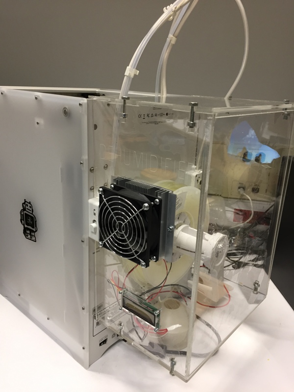I designed, manufactured, assembled and attached the "Dehumidifier" to the "Ultimaker3-Extended" 3D printer.