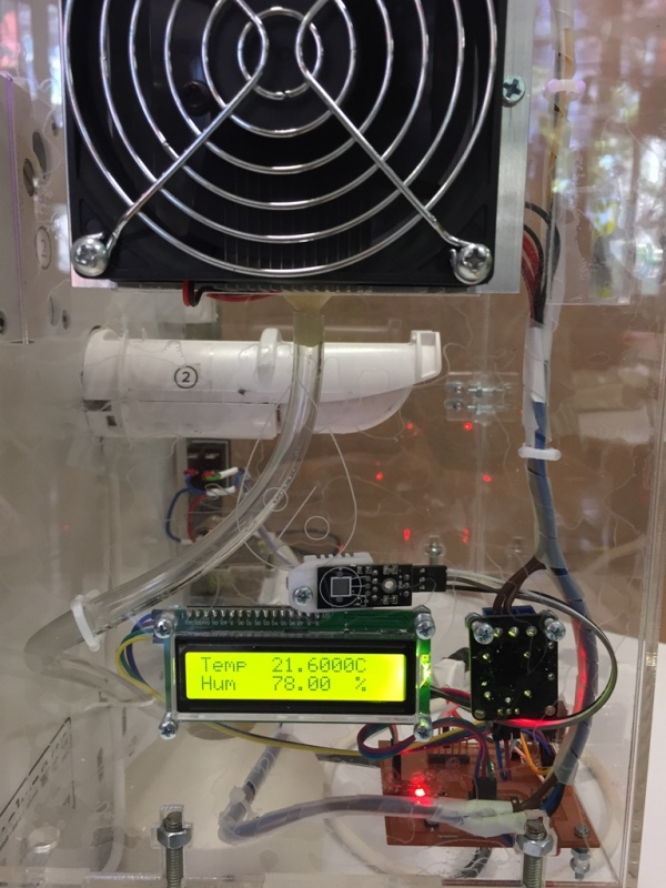 Berytech is located in the mountainous region so the humidity level is lower than the seaside. In the below video you can mention that we are reaching the limit of 50.00 %, the RGB LED light is magenta when the Peltier is "On" and the Humidity is over 50%, when it reaches the 50.00 % the "Peltier" will turn Off and the RGB RED will be red.