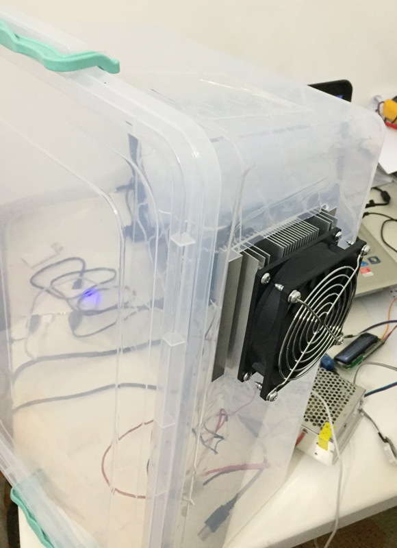 I added a new fan on the cold heatsink back-side upon the recommendation of my advisor to produce an air circulation inside the box. As a result the layer of ice was not formed anymore but the result was not satisfying.