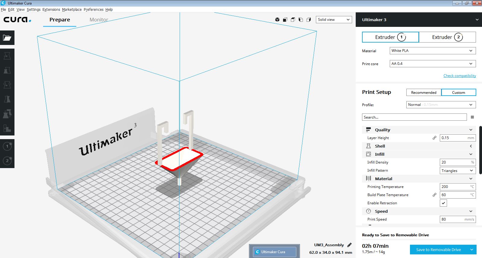 I attached it to the extended Ultimaker 3 and fixed the "Peltier" and the LCD screen
