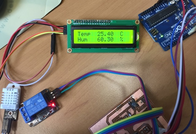 As you can see above, I connected the Humidity sensor "DHT-22" to Arduino to read the respective value on the screen, and when the Humidity exceeded the 60%, the relay (LED) turned on the Dehumidifier.