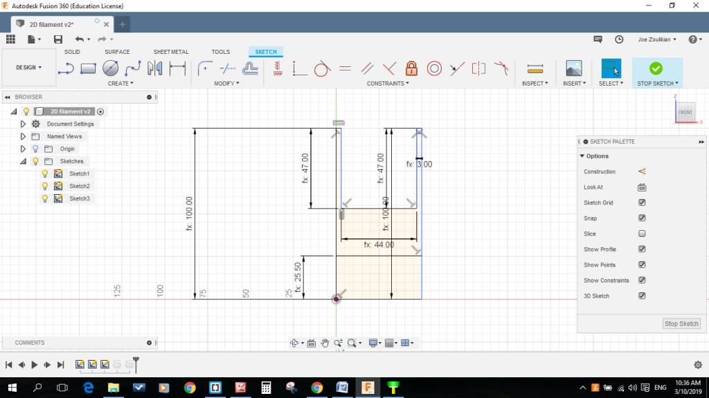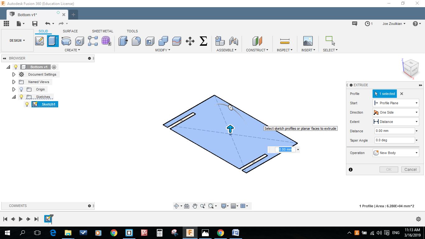 I started to draw the 2D model then by using the extrude function I created a surface having a thickness of 10mm.
