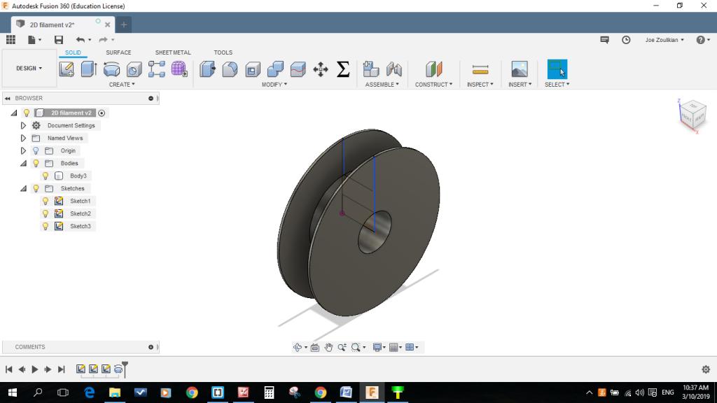 According to the PVA filament role size I designed and revolved a primary model of the "Dehumidifier" that will be an extension connected to the "Ultimaker 3".