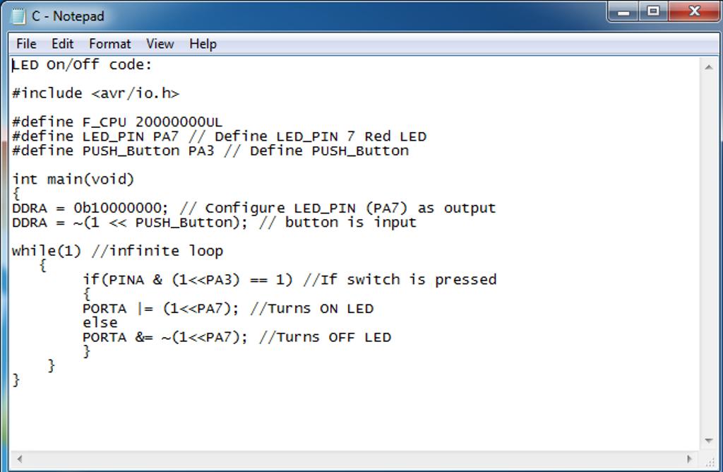 The Code to turn On/Off a LED.