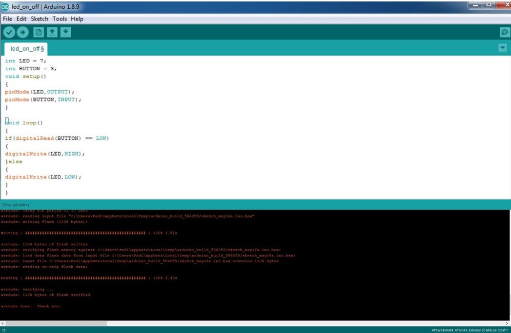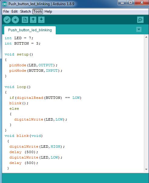 I will write the program, that turns LED On and Off via push button.