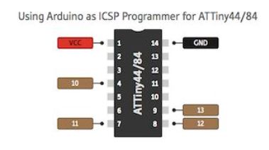 According to the ATtiny 44 pinout configuration my wiring will be as follow: