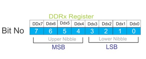To make all pins of port A as ouput pins: DDRA = 0b11111111;