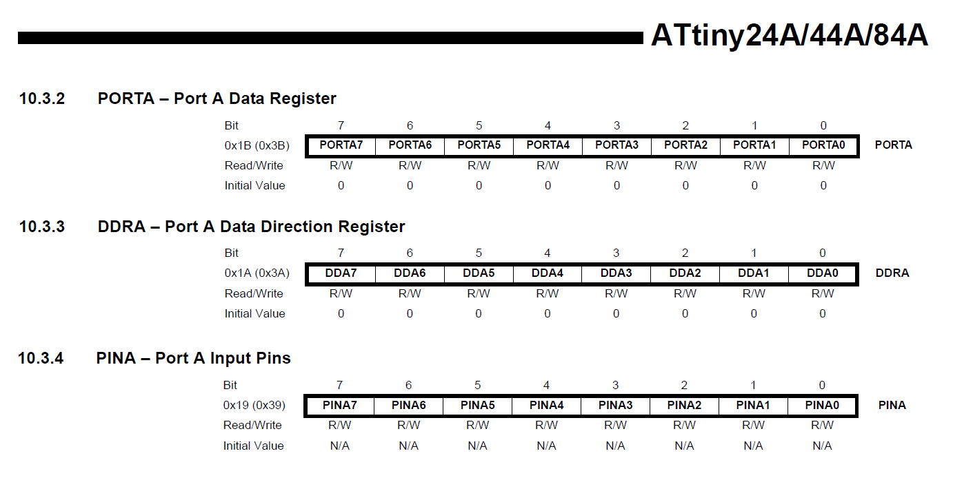 To make all pins of port A as input pins: DDRA = 0b00000000;