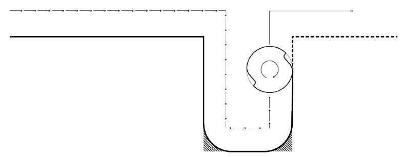 If, for example, this same slot was cut in another piece of material and the two were intended to slot together, the pieces would not fit flush as the rounded corners at the bottom would interfere. A solution for this problem is to fillet the internal corner. There are various methods for doing this (sniglet, t-bone, dog bone). The t-bone fillet is shown below: