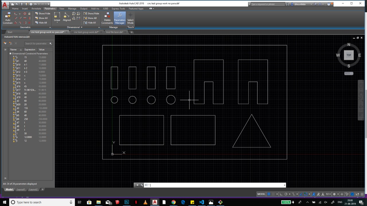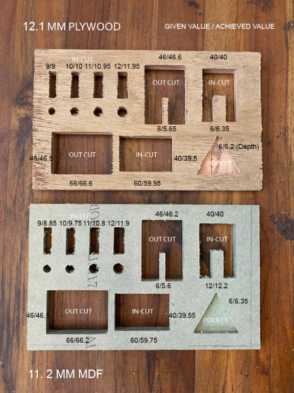 Parameter that we wanted to test were : 1. Check Difference In Dimensionin In-Cut and Out-Cut also difference in Pocket Depth 2. Difference in dimension with material and shape of cut part.