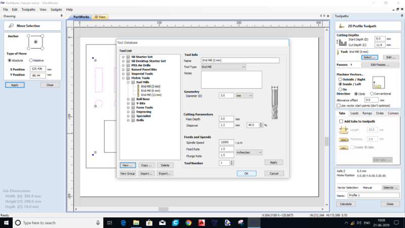 The machine we have at fablab CEPT is the ShopBot Alpha with a bed size of 96"*48" which allows us to go upto the depth of 6".