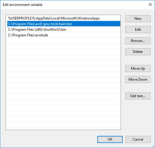 C:\Program Files\avr8-gnu-toolchain\bin C:\Program Files (x86)\GnuWin32\bin C:\Program Files\avrdude