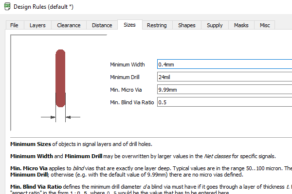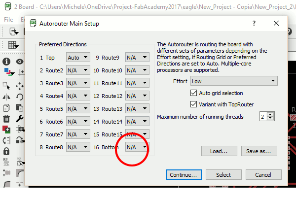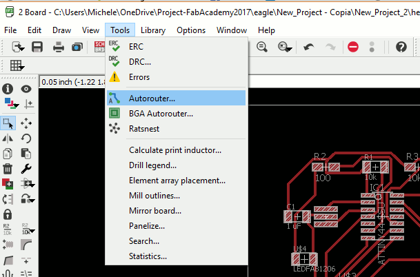 I set them to 0,4mm; and i choose to autorute the trace. Important: choose to autorute only the top of the board.