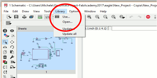 expecially the resistor for the led. It's possible to calculate the resistor we need on this website:. After Install Eagle I download the fab library (a list of electronic component that any FabAcademy student must have).You can download it