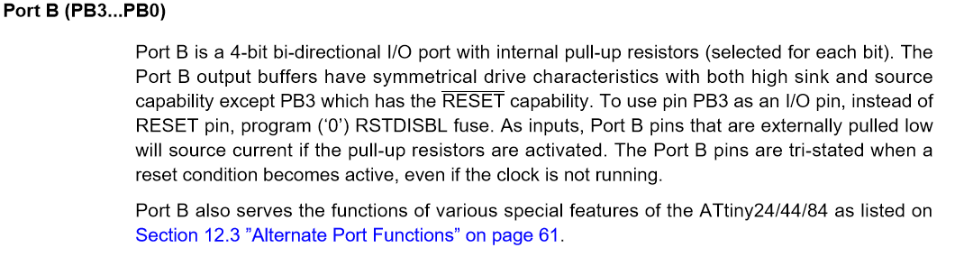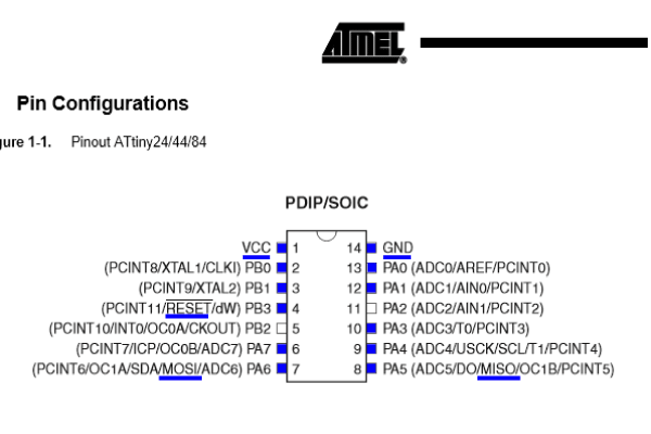 For undertand how use better the Attiny 44 I read the datasheet for undertand the Pins and his internal architecture: