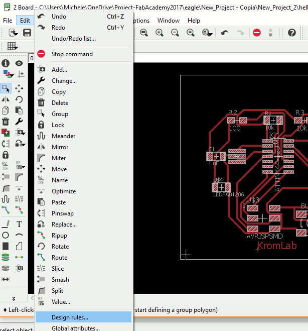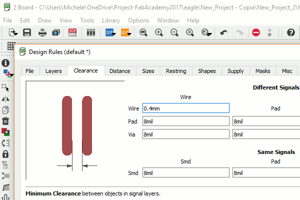 When I set the design rules i don't set the distance between the via and the pad and it's too small, so i set it to 0,4 mm and I regenerate the trace with Eagle, and I export them: