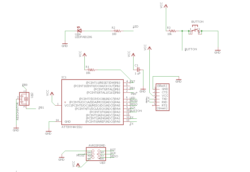 In my case I use Port B for connect the chrystal resonator so the attiny can work at 20 Mz and I use port A for connect the led and the button.