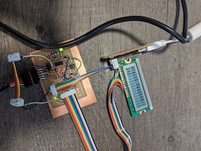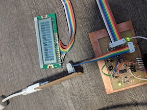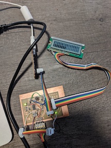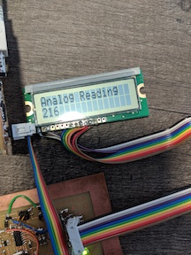 I decided to use the I2C protocol for having different microcontrollers talk to each other, since the infrastructure for its use (clock and MOSI, used as SCL and SDA, respectively) are already in place on every board we design! Shout out to here for having all of the background and sample code available for how to use it with an Arduino and the Wire library. As always, the Arduino Reference for Wire is always great for getting the syntax…write (ba dum tiss). I used Neil’s schematic initially to make the LCD display, but I saw that you do not need to use the SCK pin (which is needed for the I2C communication), so I used one of the other ADC pins for the E connection to the display.