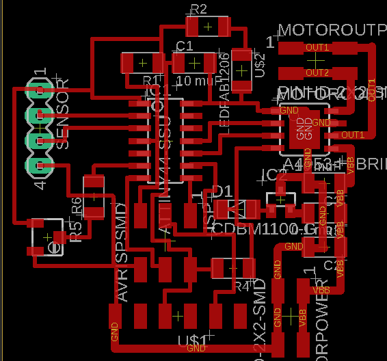 In output devices week I talked a little bit about some problems I had with getting the motor to work, due to both outputs from the h-bridge being high despite only in 1 being high, so we cut one and tied it to ground. That meant from the programming the motor could only run in one direction, but we could always flip the 2x2 header leading to it around to change the direction. I also want to rehash the issues with the digitalWrite vs the analogWrite, where the analog appears to work better. OK!