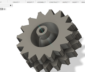 From there, I decided to redo that sprocket. Instead of being only in contact with one part of each link, two would provide more stability. So I used the measurements from my conveyor link file and redid the sprocket. I also redid the edges to not be rounded.