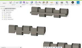 Inspired by my (original conveyor design](http://fabacademy.org/2019/labs/dassault/students/alexander-demers/assignments/week15/), I decided to change a couple things. First off, move away from the pin system to a snap, which increases the flexibility of it. I was able to keep the same footprint on the underside for the sprockets to catch, so that was a plus! I also wanted to hide the motor within the conveyor belt, so it was important to make them a bit wider so that the motor could be tucked away.
