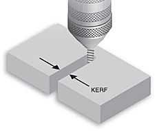 When talking about CNC shape cutting with typical cutting processes, kerf is the width of material that the process removes as it cuts through the plate.