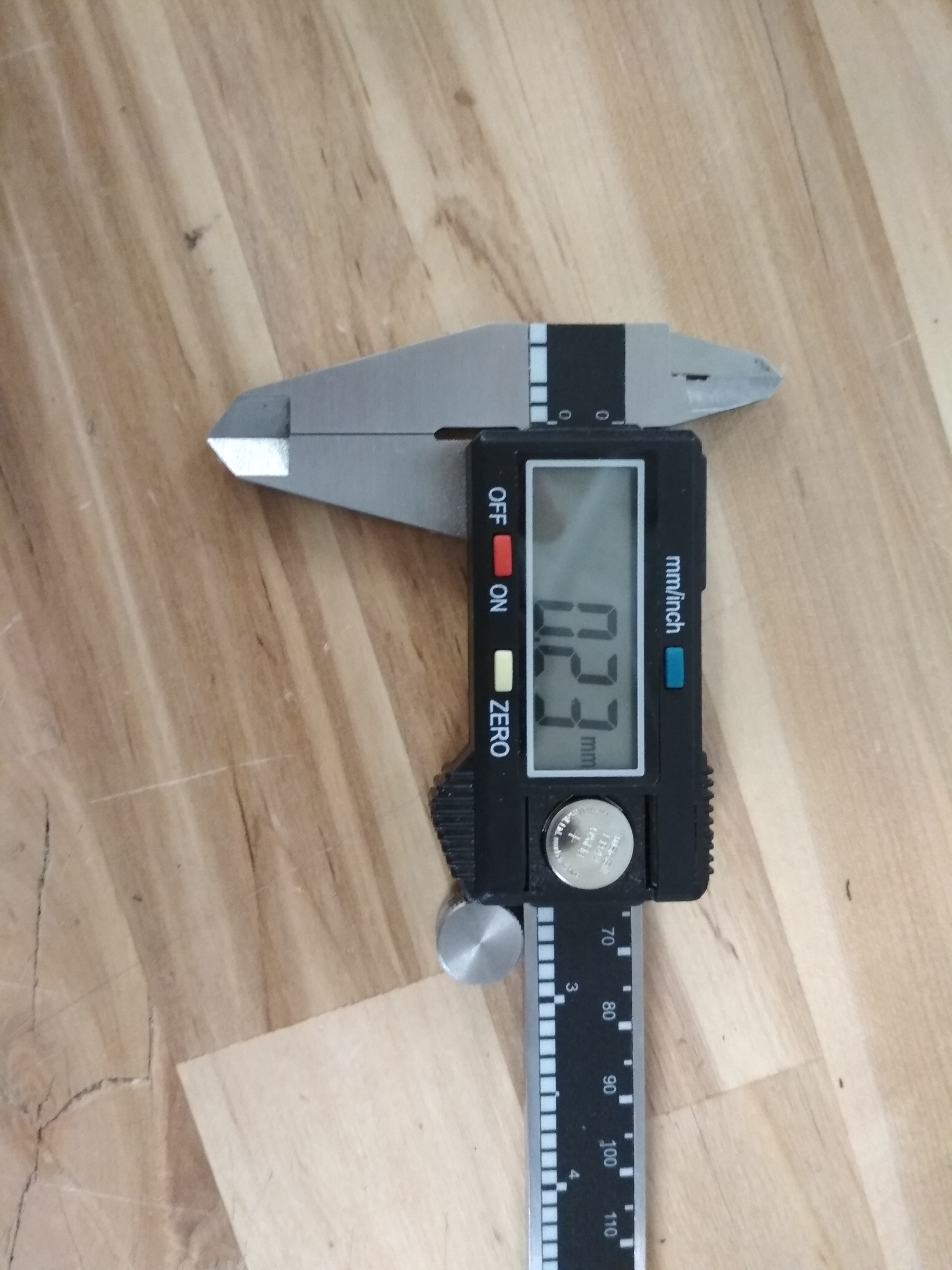 After a lot of errors, I got to the number 0.23 mm, that is the same that saying “the knife should just be starting to come out of the knife case”: