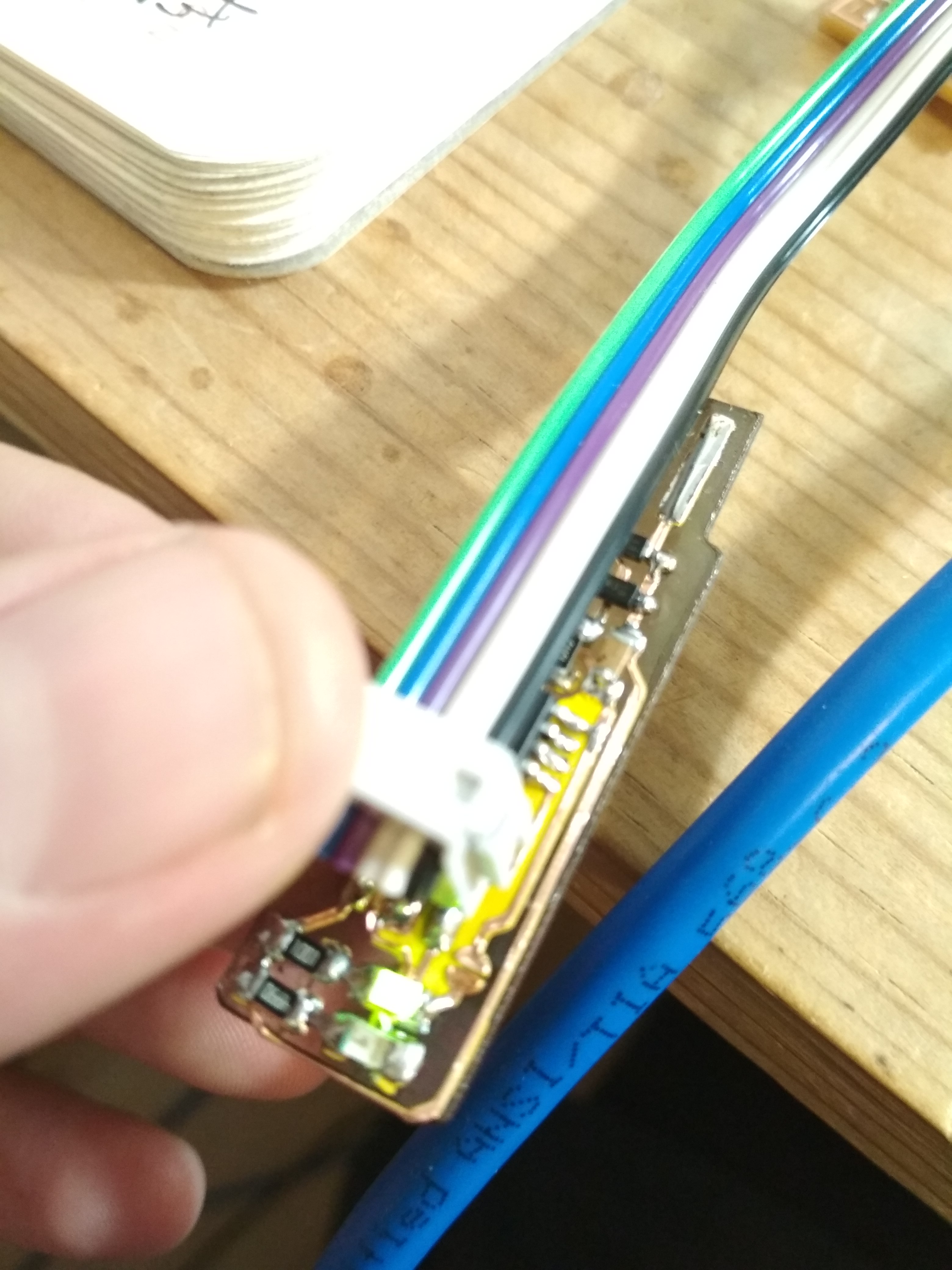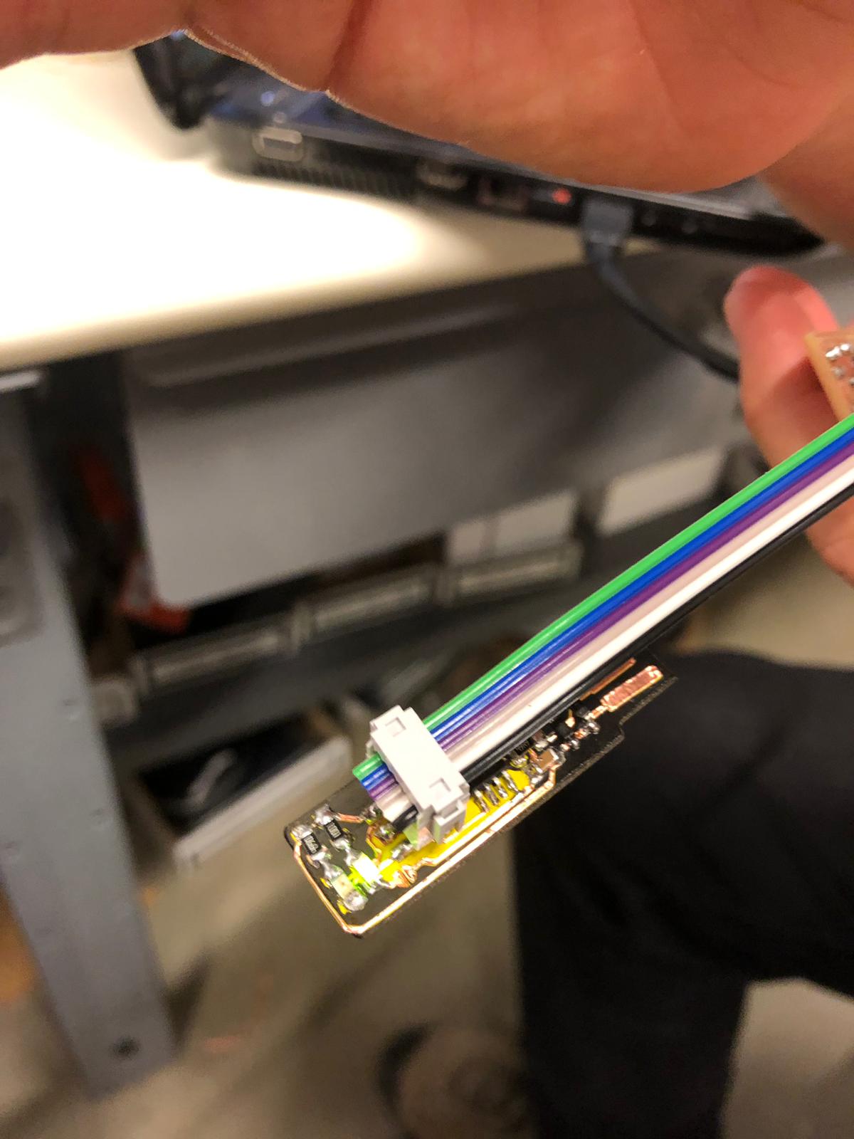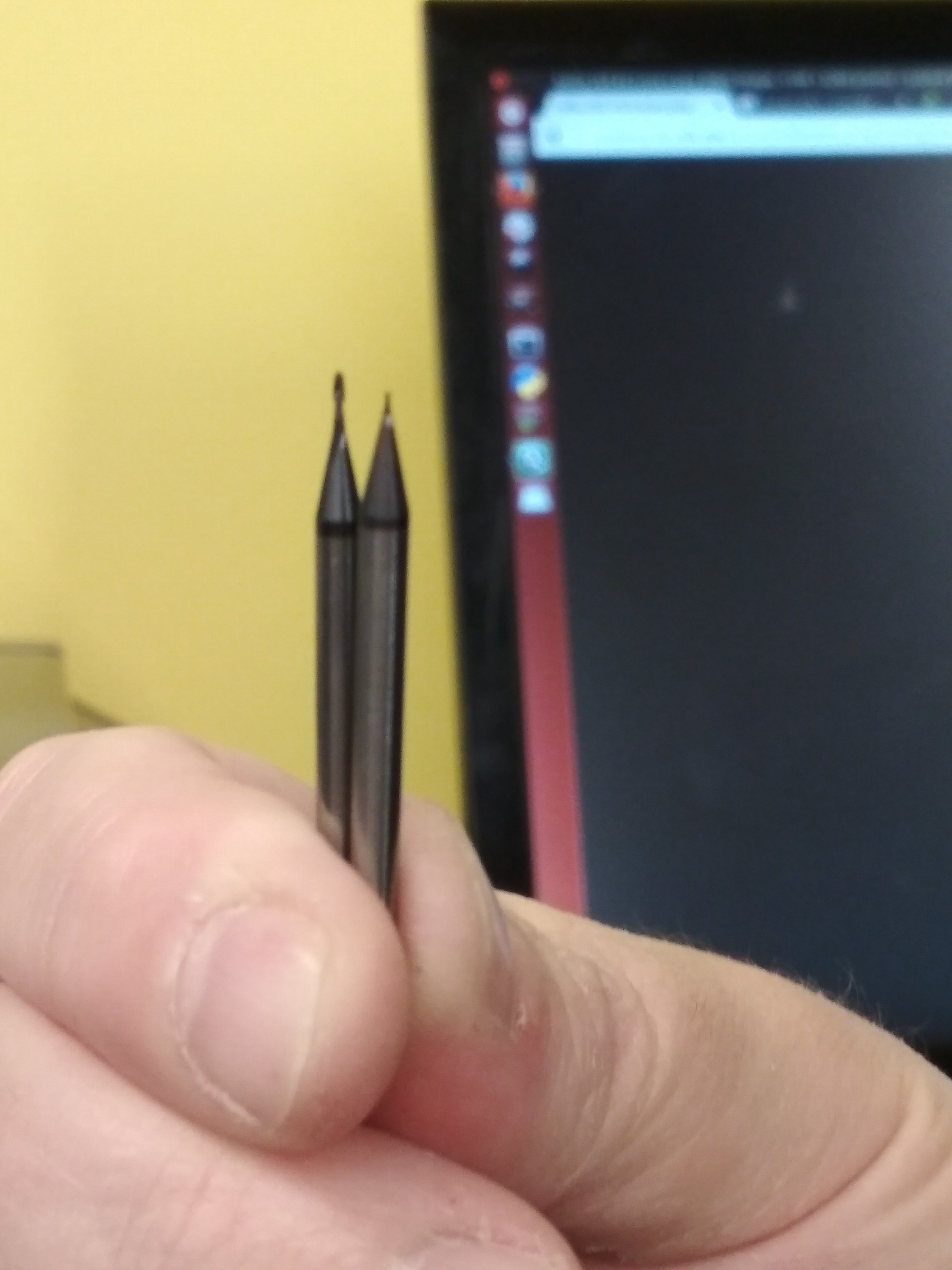 The first time we cut the traces, we chose the wrong end mill, installing the 1/32 for the traces, instead of the 1/64, so this is what’s we got: