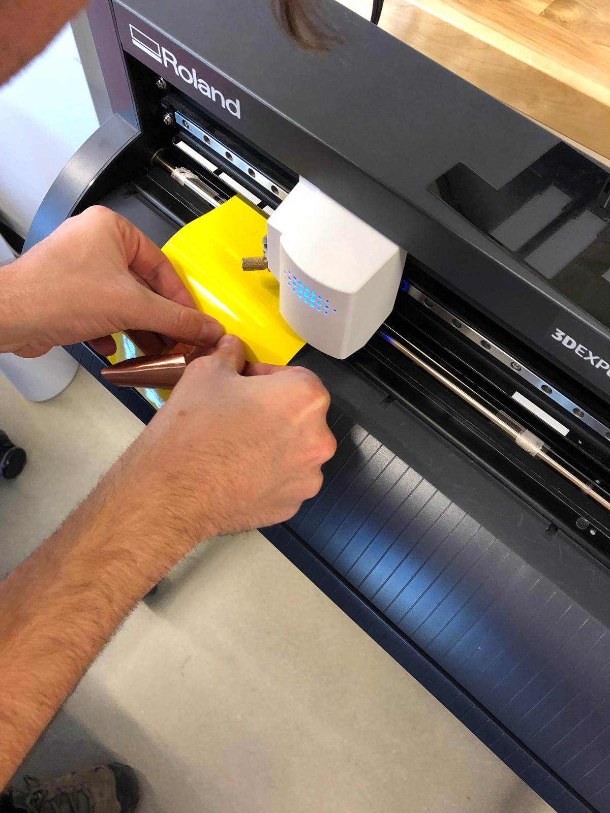 Copper vinyl is really hard to cut, so when I managed to get a cut depth that didn’t destroyed the whole circuit board, normally it wasn’t enough to cut through the copper: