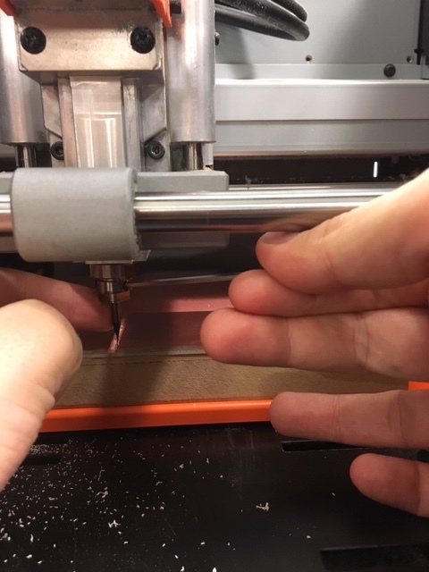 In order to zero the Z axis, you release the end mill and kindly drop it until it touches the PCB.