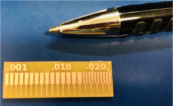 This is the result we have gotten, we can see that the machine is able to cut lines of a thickness of 0.001 inches. Meanwhile it isn’t able to cut slots that little, the minimum thickness it could cut was 0.016 inches.