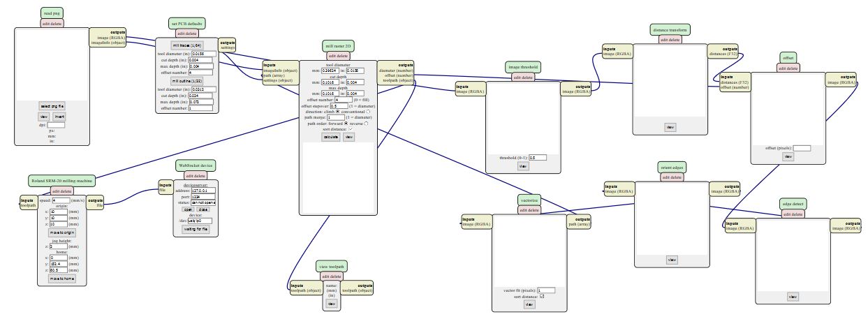 To program the machine we used Mods, a cloud program developed in MIT CBA lab, that allows users to control different machines through the same software.