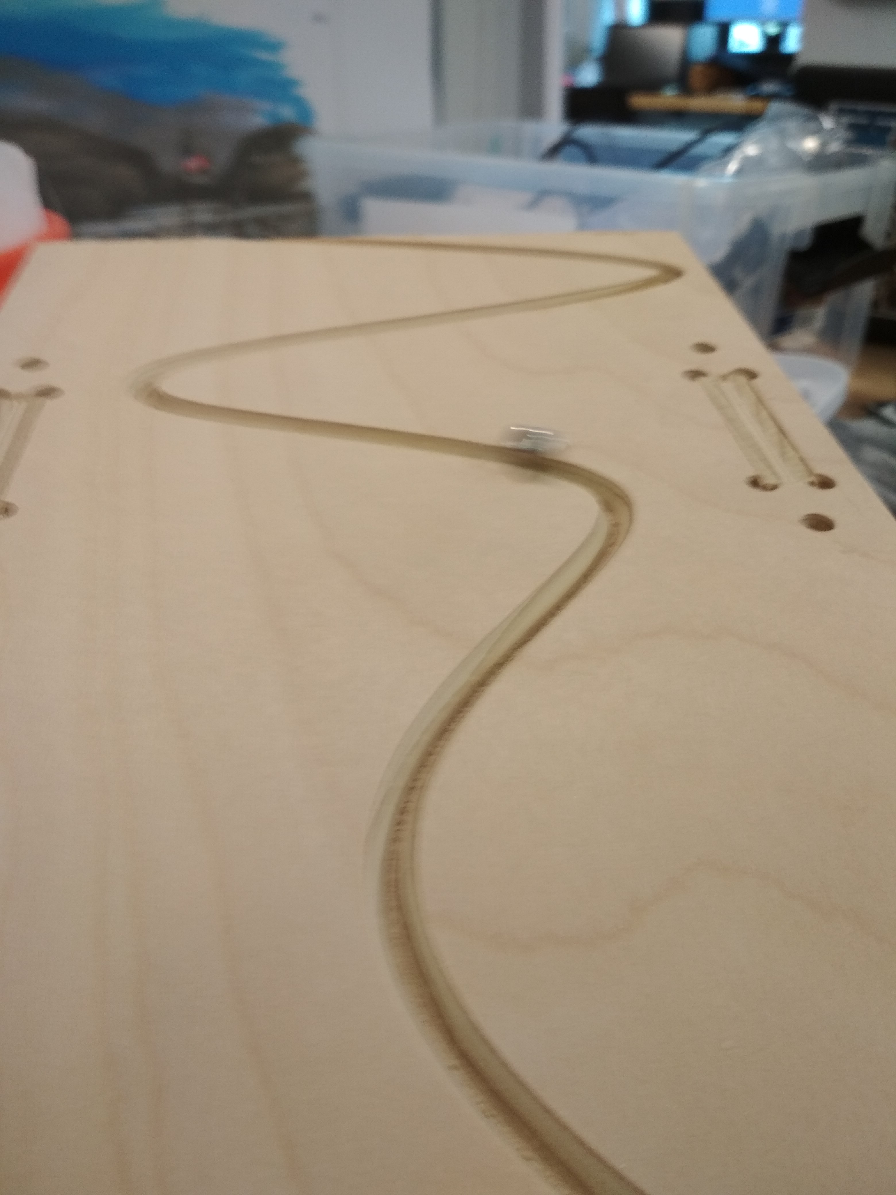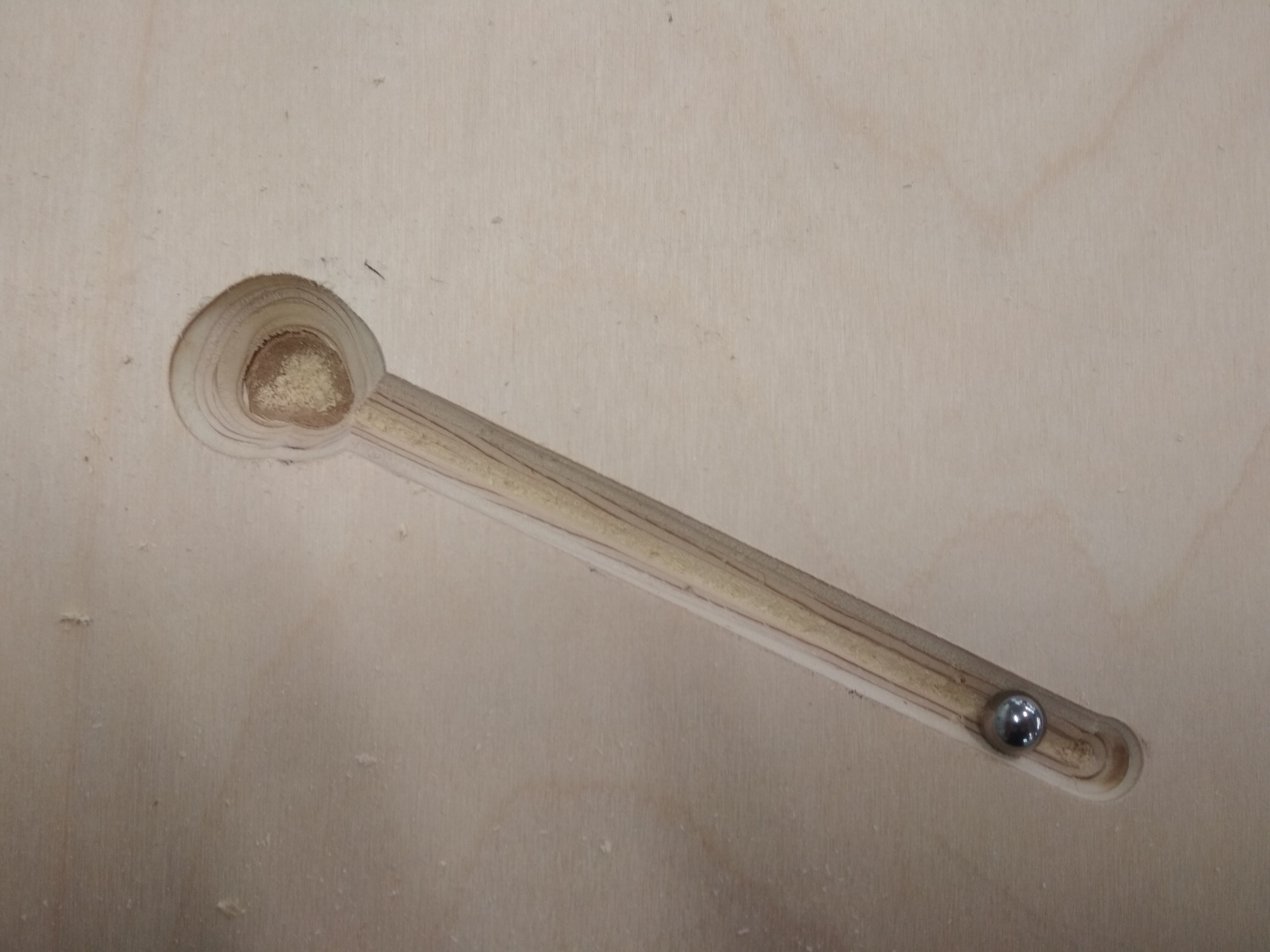 The whole point of the ramp is to make a path where the ball can travel to activate the Rube Goldebrg Machine. Sadly, the first to pathes I made wasn’t deep enough, and the ball just went off: