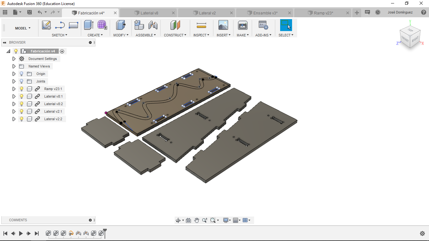 After the whole process, Fusion 360 allows the user to simulate the cut, giving alerts in case that a crash or a excess of material removal ocur.