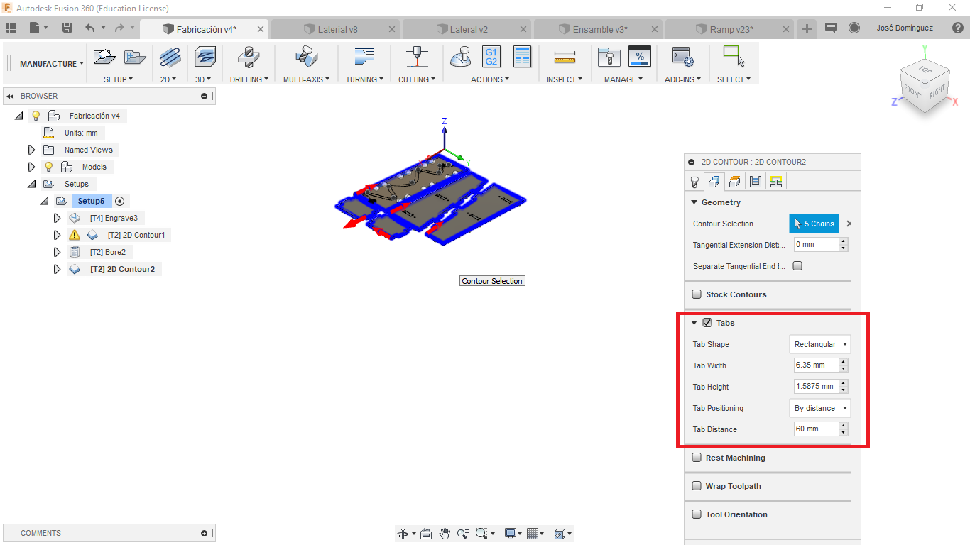 Tabs fix the inside part to the stock, this keep the part your are cutting in the same position, that way the machine doesnt cut the part because it moved. Also it doesnt allow the part to fly away after been cutted.