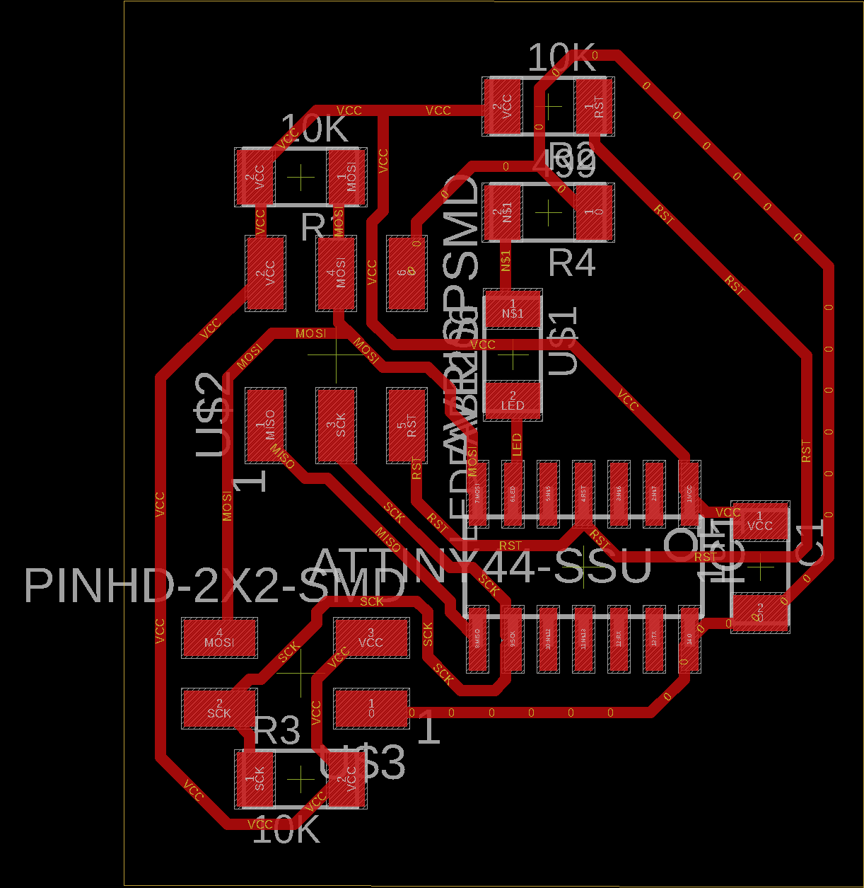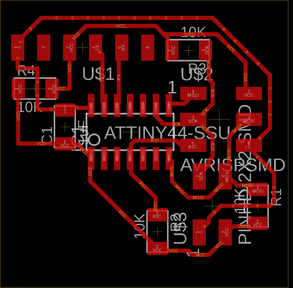 I built 2 boards, a master and a slave, both of them using the Attiny 44.