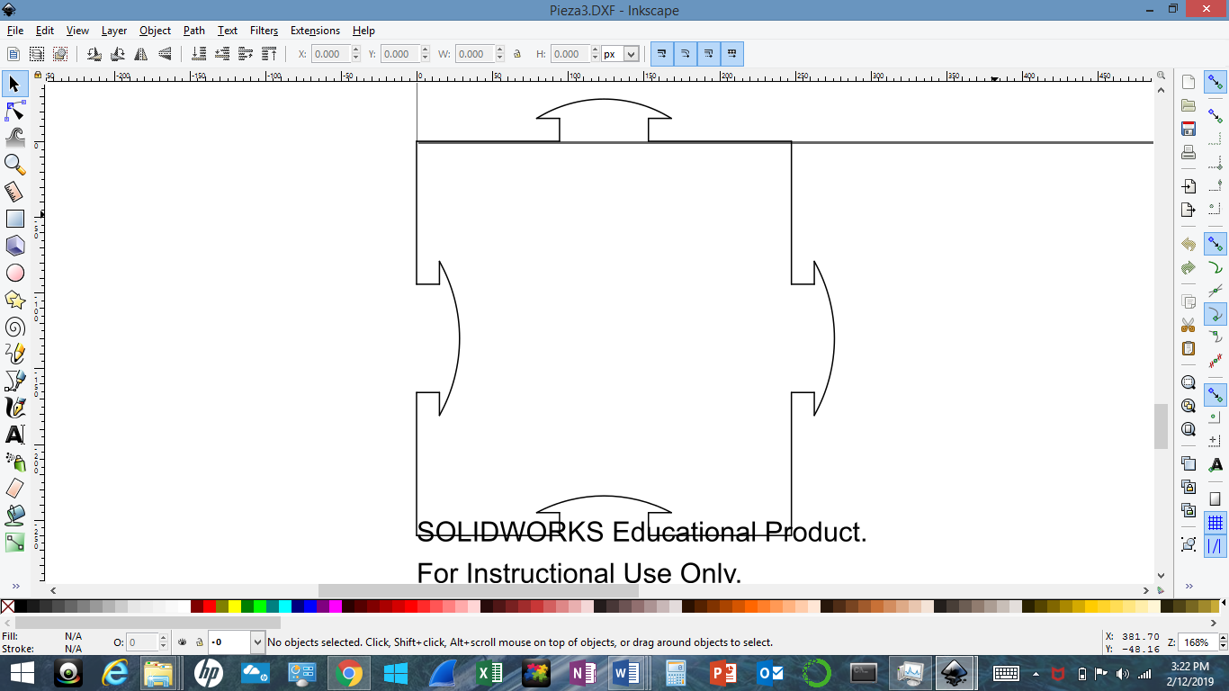 This is my SolidWorks design now imported as a DXF file into INKSCAPE for its edition and later cutting with the Laser Tool: