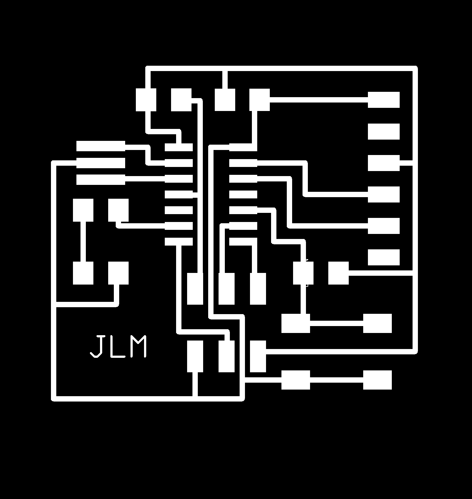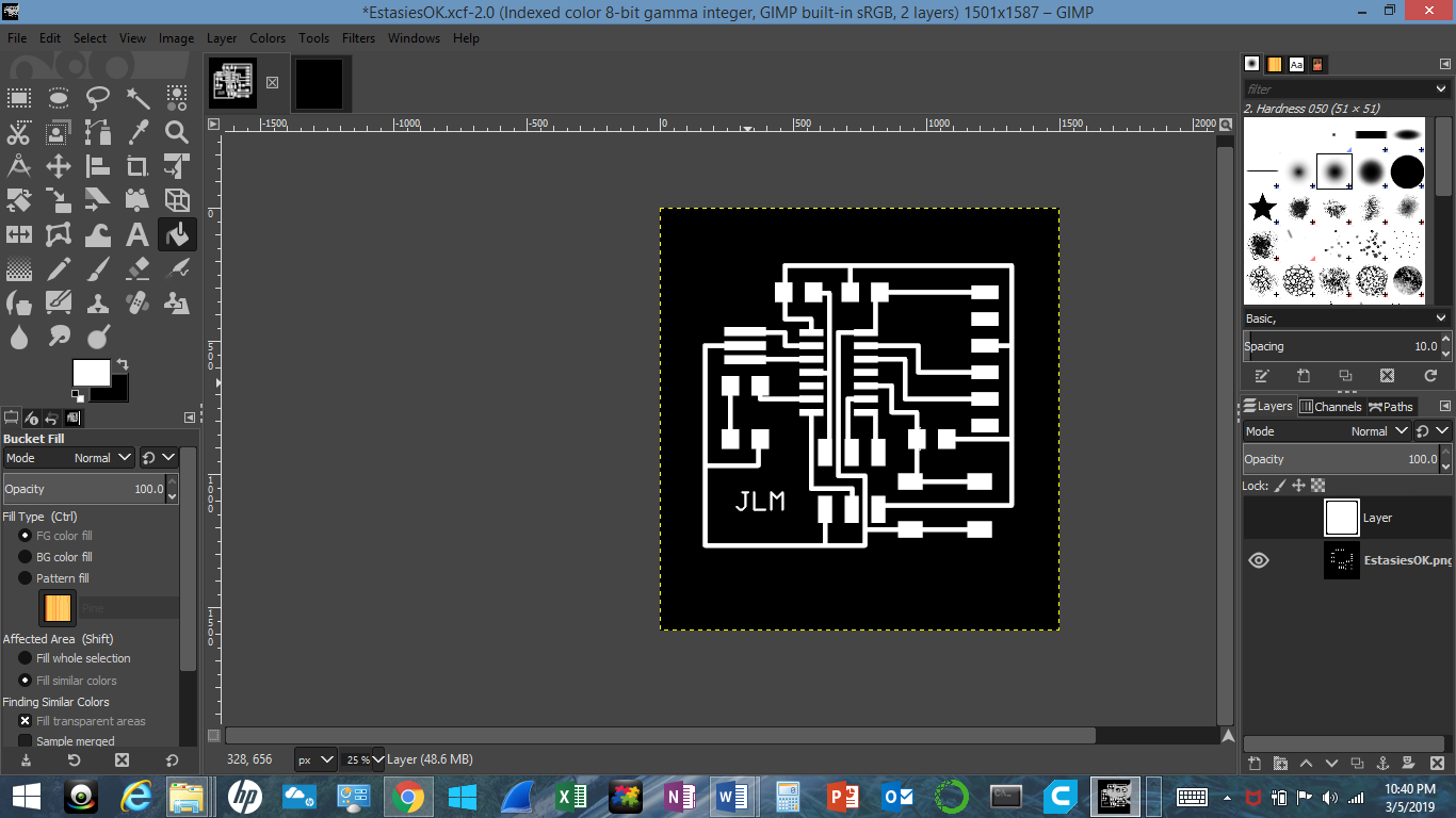 The board file produced by Eagle was edited using Gimp to produce the Complete layout of the board to be milled: