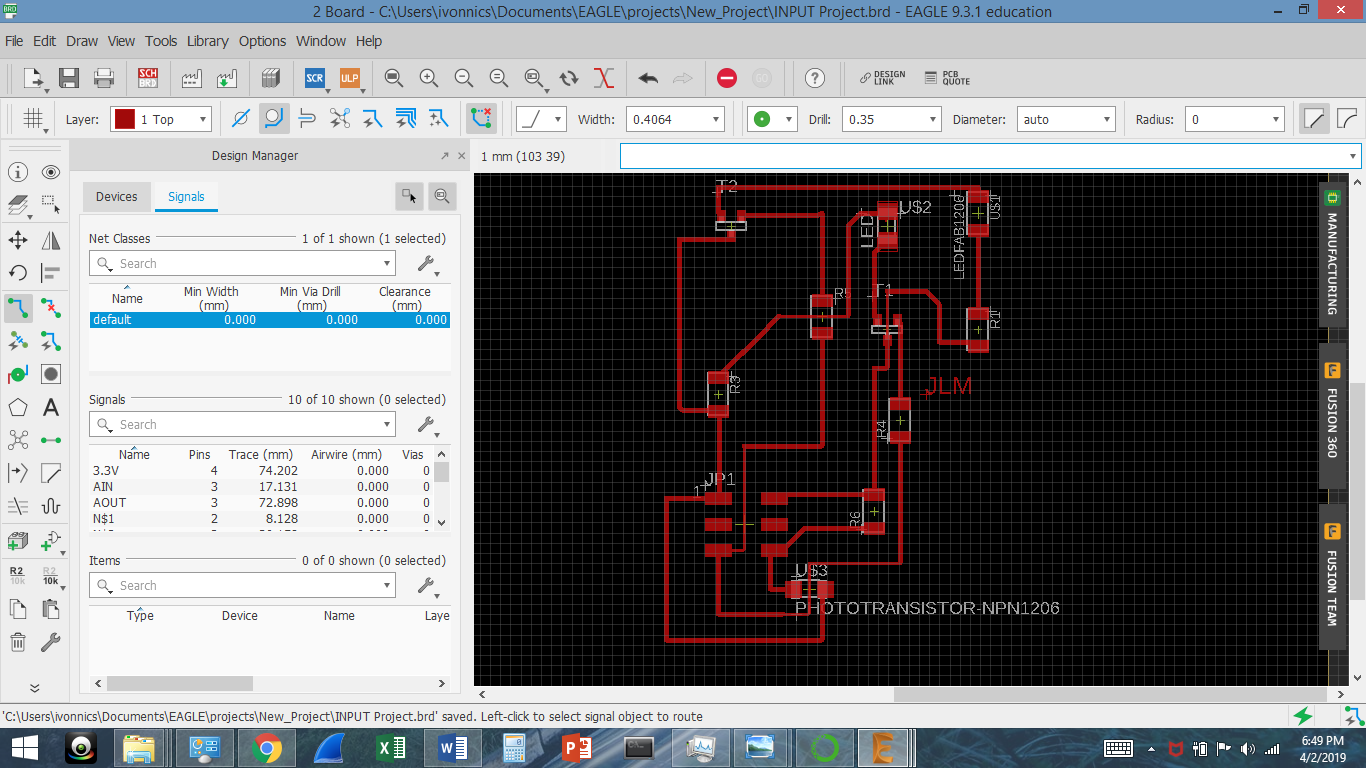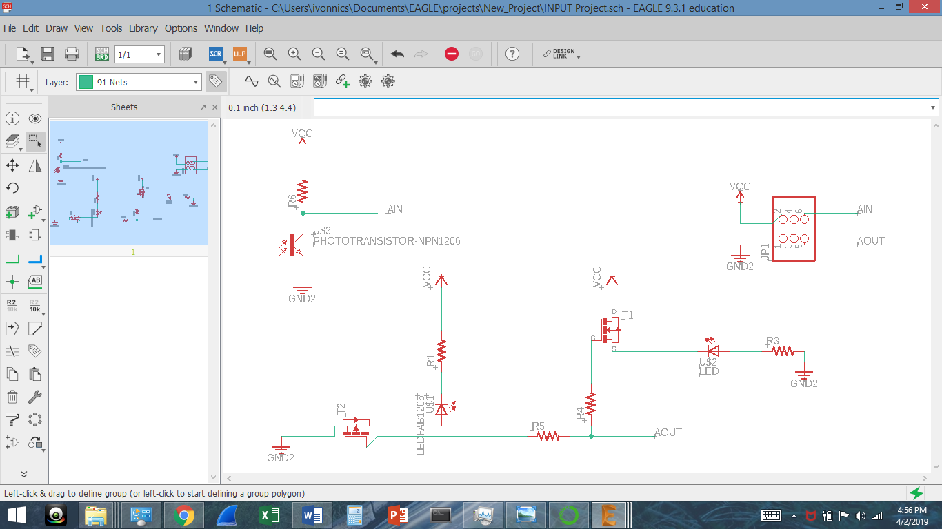 This week I worked on a light sensor and an array of two MOSFET controlling two different Leds using only one ATTINY44 pin…
