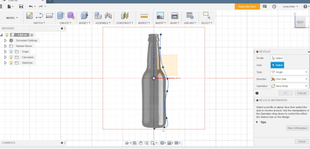 And Finally I have created a revolve with one side direction which is 360 deg angle type