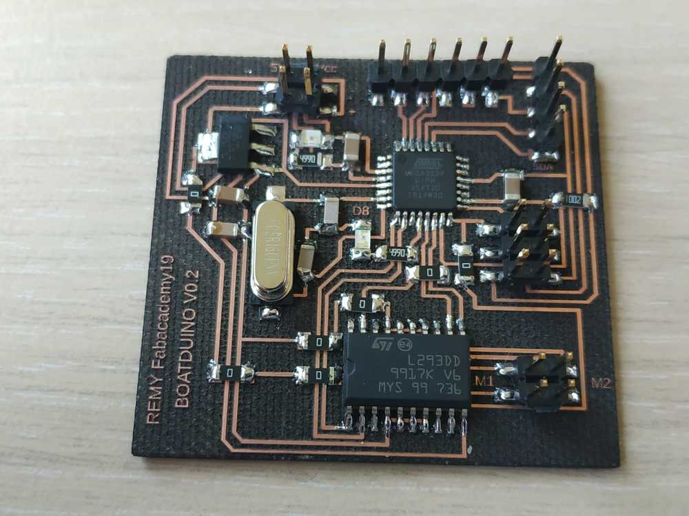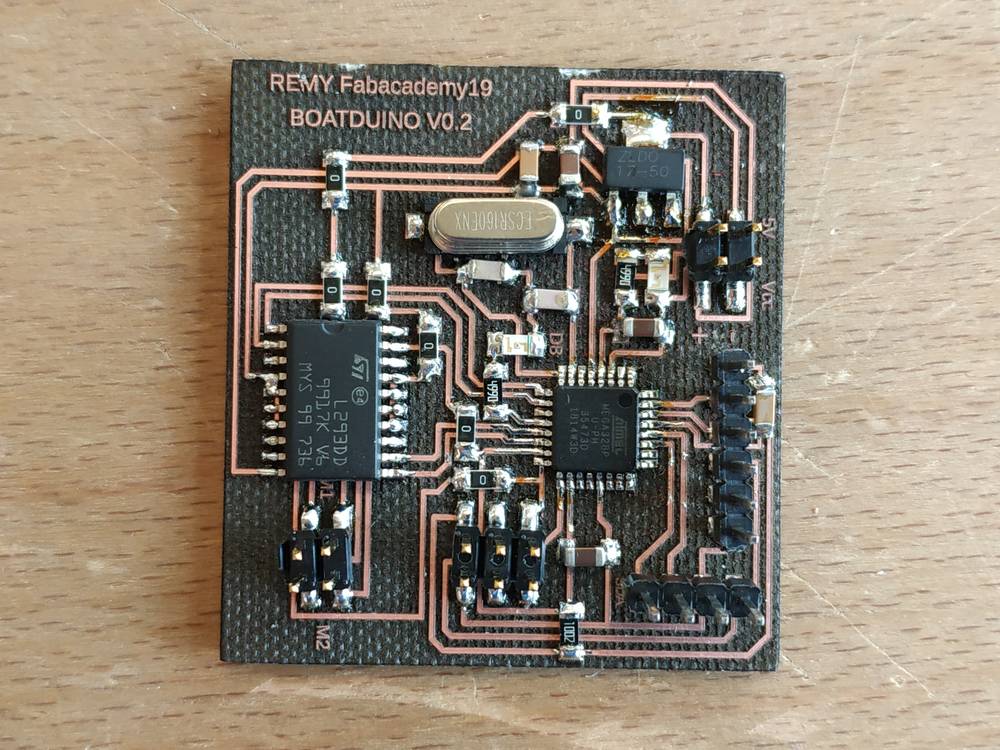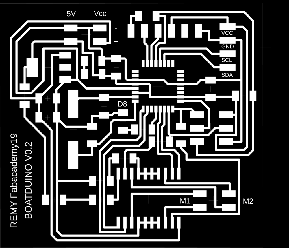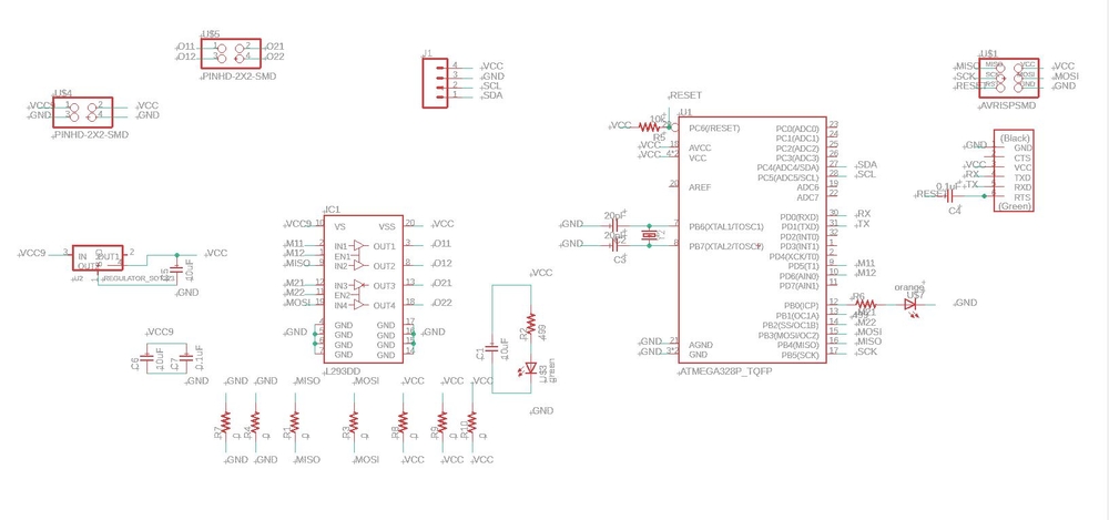 During the output device week I’ve made a PCB to control two DC motors using a H bridge and an Atmel328p. This PCB fits for this project so I used this design.