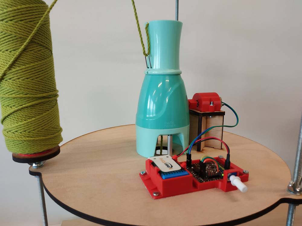Also once we put the yarn in the machine we can feel that the mecanical constraint is even greater. I didn’t manage to make it work with the yarn.