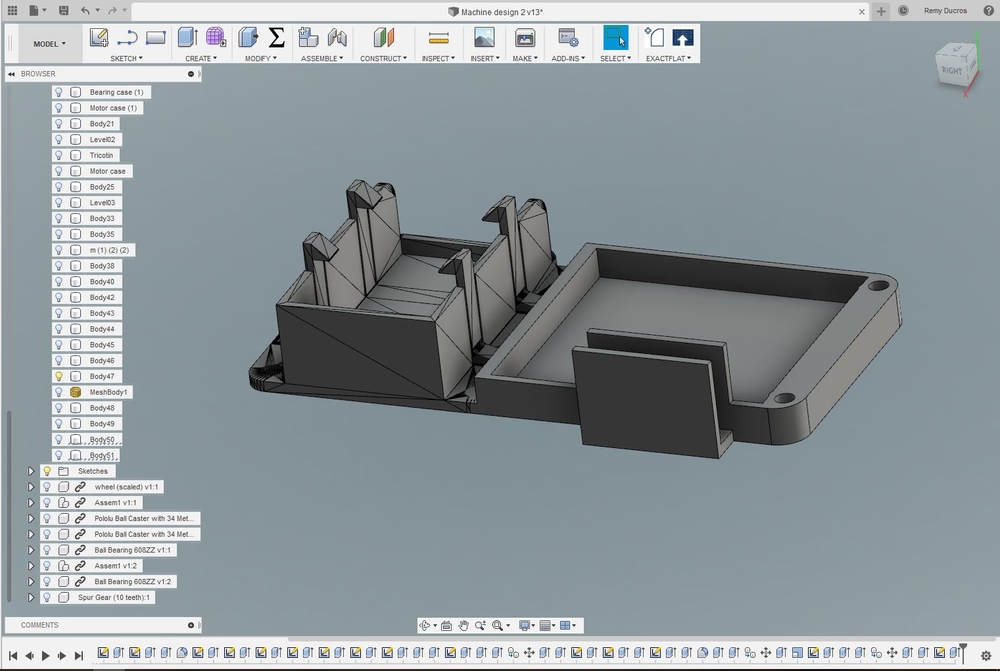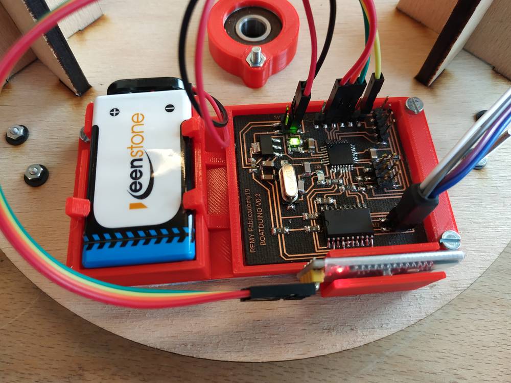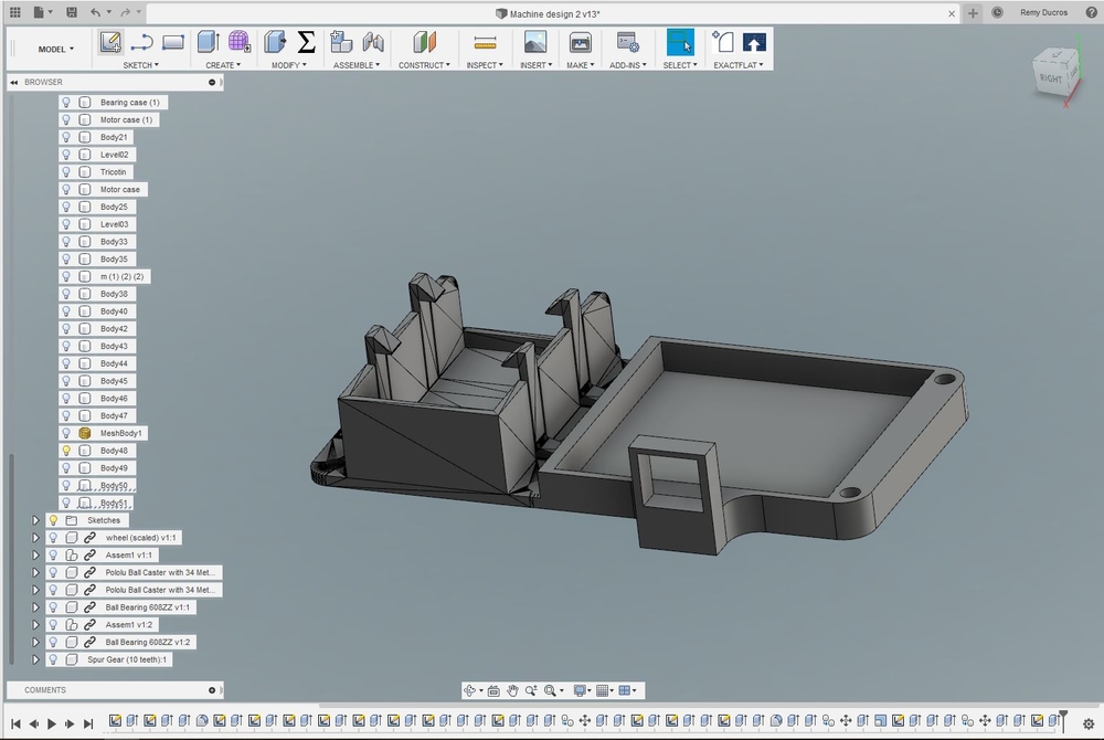 To fit everything (PCB, battery and bluetooth module) in the machine, I’ve designed a case that I 3D printed.