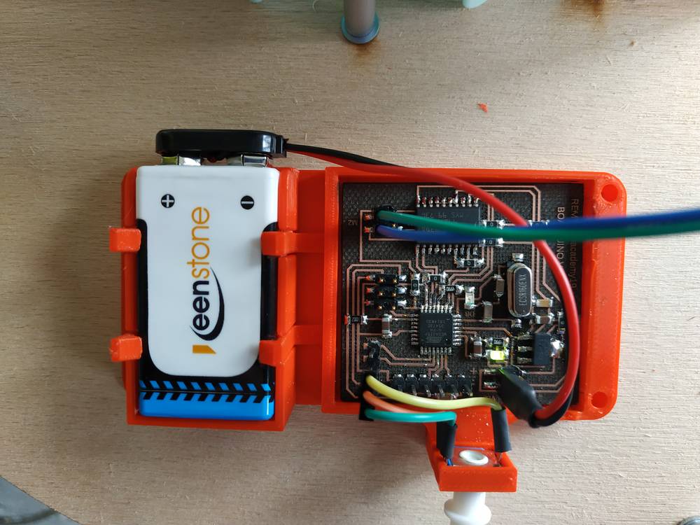 To fit everything (PCB, battery and potentiometer) in the machine, I’ve designed a case that I 3D printed.
