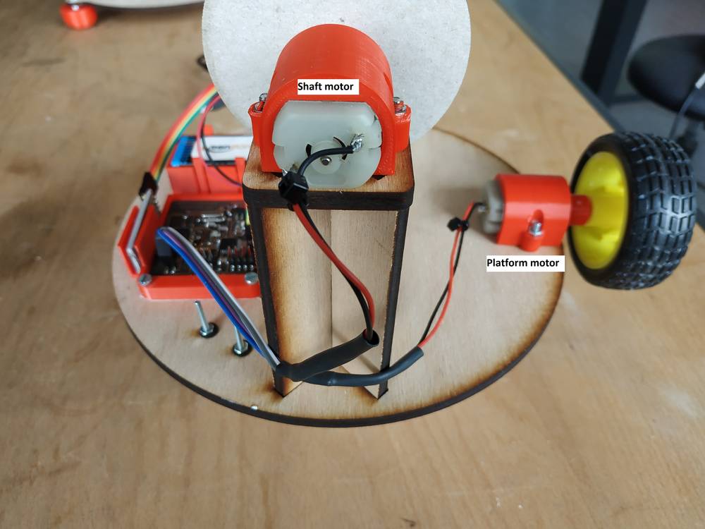 - one DC motor to the wheel to rotate the platform as I needed to rotate the platform fast enough