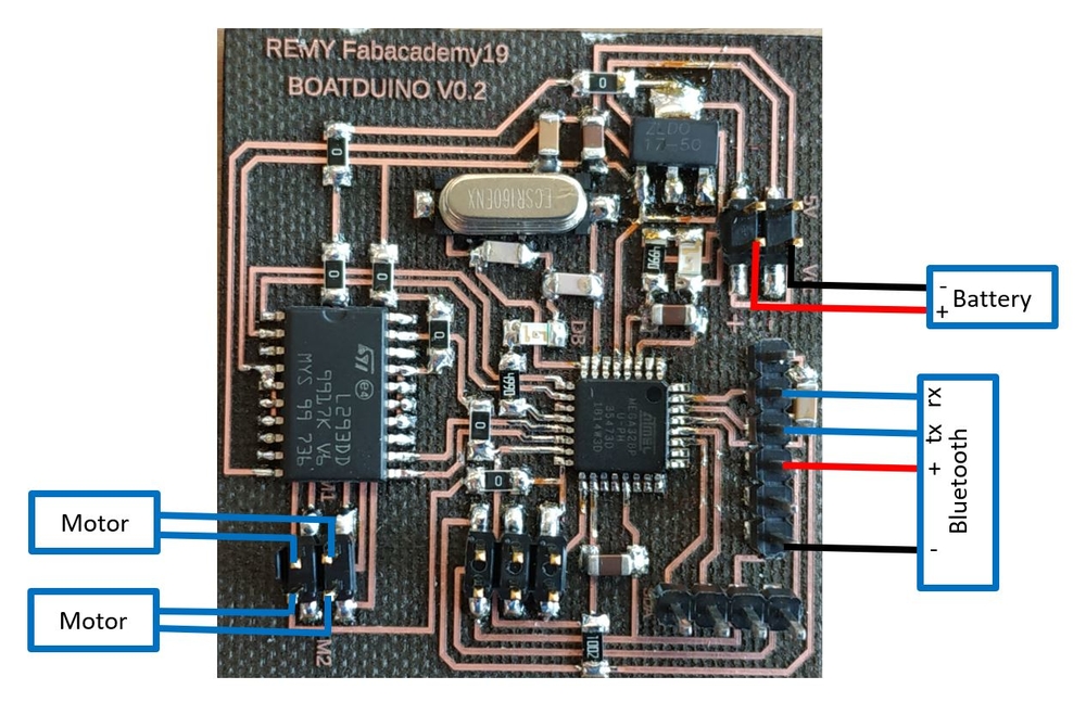Here I have a board where I can plug a bluetooth module on it and directly control two dc motors.