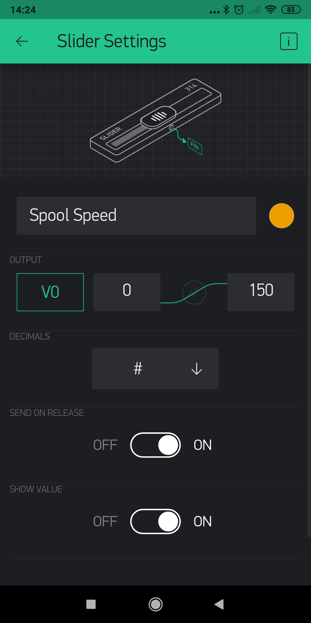 For the ON/OFF button I just had to configure one output of the configuration pin of the H-bridge to enable the motor and make it start. To control the speed however, I had to create a virtual pin and refer to it to send a PWM command to my microcontroller.