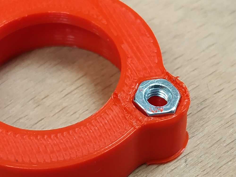 I’ve designed my cases with a footprint to fit a nut in it. To bond the metal part with my plastic part I heated the nut using a soldering iron.