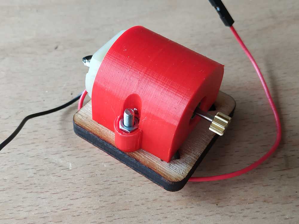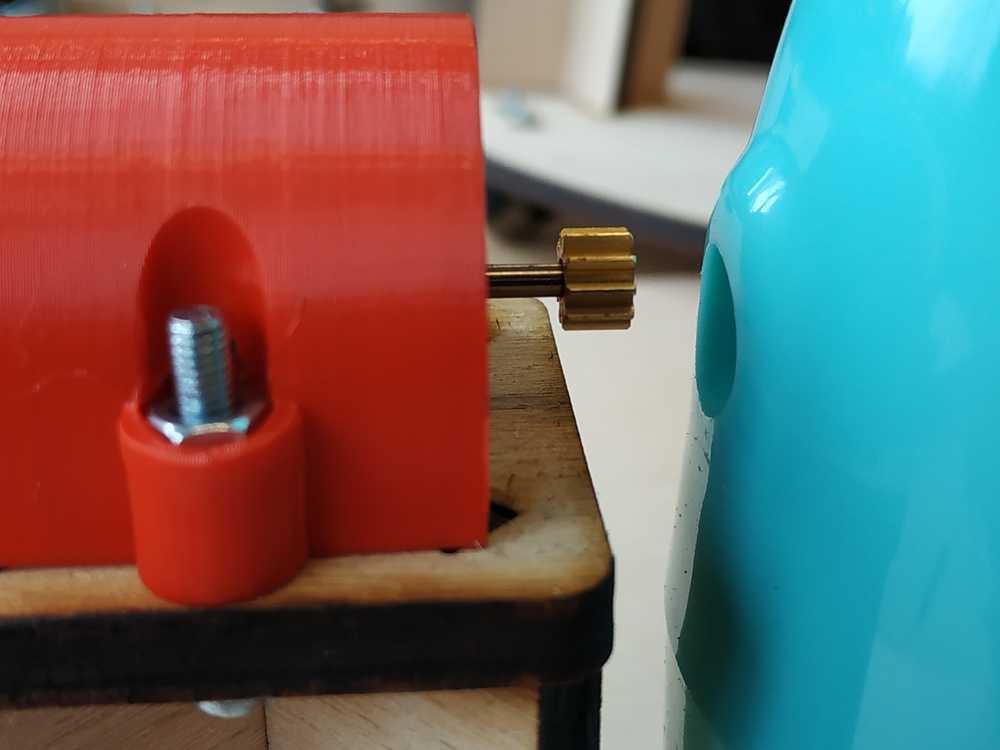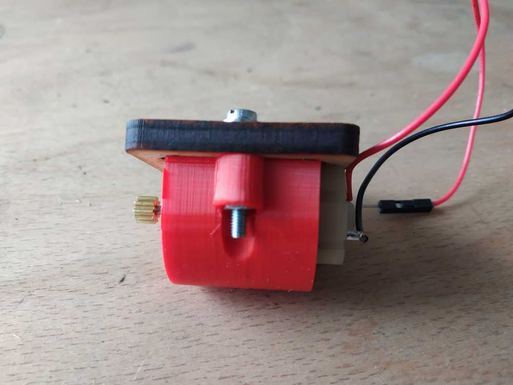 To test the spooling system, I’ve plugged a 9V battery to the motor connected to the wheel.